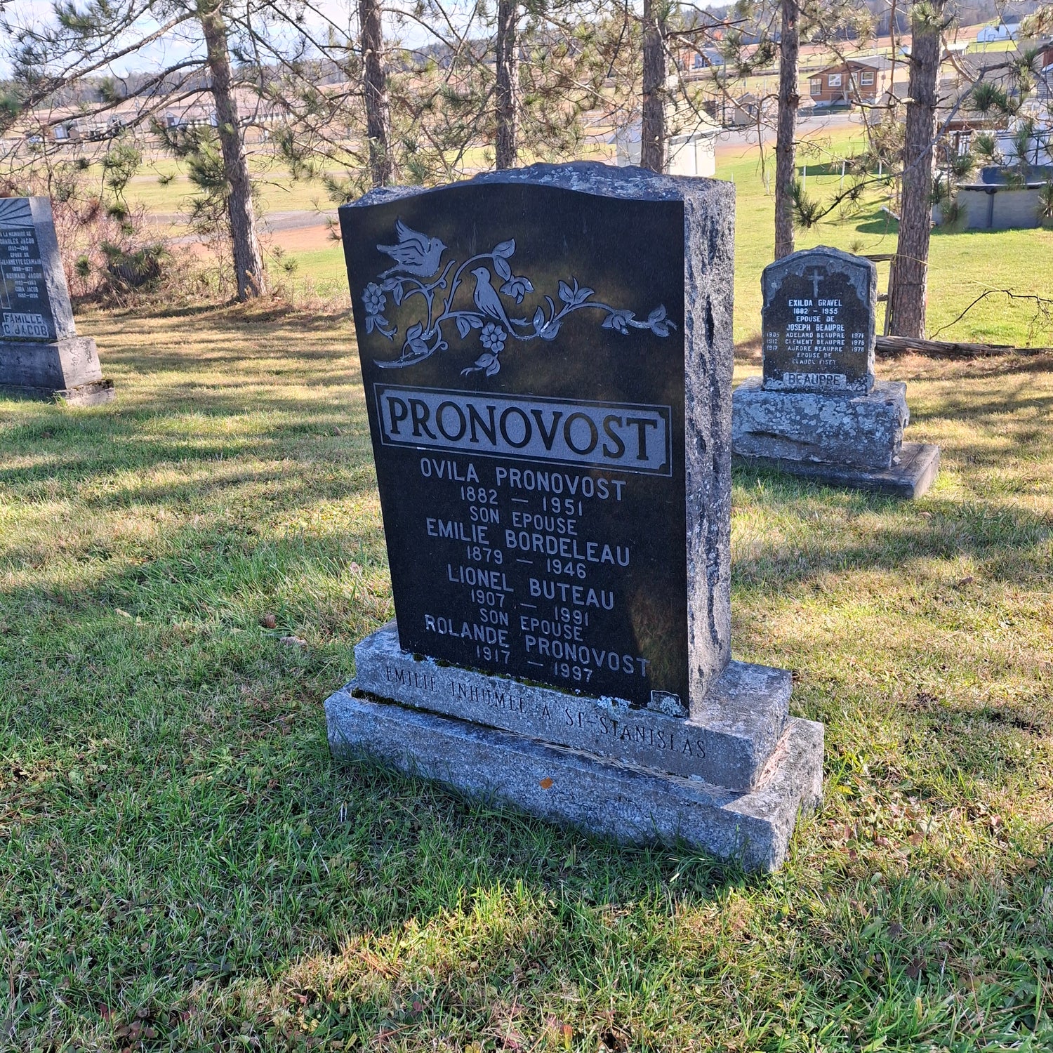 Pierre tombale d'Ovila Pronovost